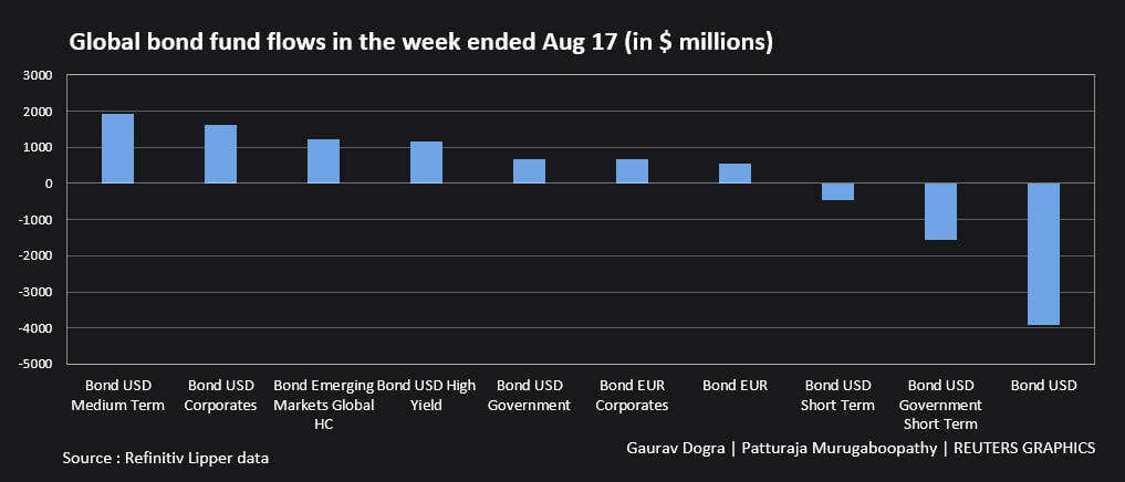 Graphic: Global bond fund flows in the week ended Aug 17 https://fingfx.thomsonreuters.com/gfx/mkt/zdvxozgbxpx/Global%20bond%20fund%20flows%20in%20the%20week%20ended%20Aug%2017.jpg